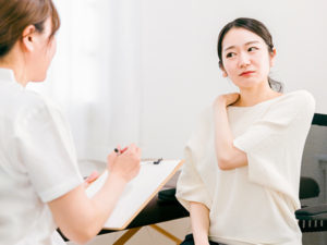 その上で、立ち姿勢・座り姿勢・背骨や骨盤の歪み・首の可動域などを確認し、