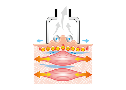 メディセルの様々なヘッドで皮膚を直接吸引することにより、優しく素早く安全に筋膜リリース(解放)します。