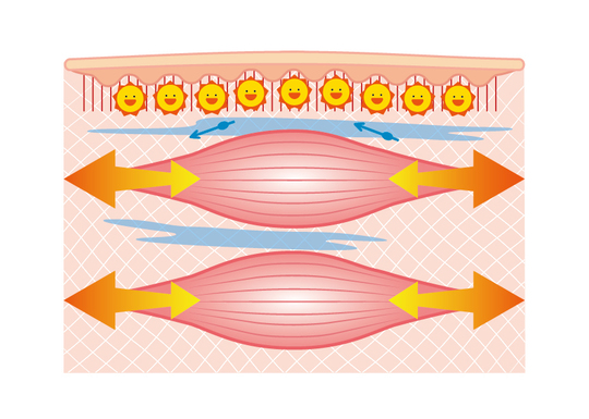 したがって、その筋膜の癒着を取り除くと、スムーズな身体の動きが可能となり、痛みが取れて楽になり、かつ美しい姿勢も可能になるのです。この施術を一般的に「筋膜リリース」と呼び、指圧、ローラー、治療器具など様々な方法がありますが、メディセルの実現する「皮膚吸引」という方法が画期的な解決方法です。