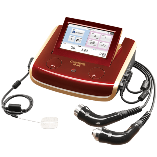 炎症反応、軟部組織損傷の改善に効果的な超音波と同時に痛みの改善に効果的な電気を流す事により、早期の症状改善を行う事ができます。